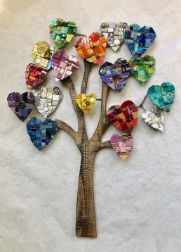 Open your heart and fall in love with mosaics! This time of year we make Hearts that are approximately 8 inches, can be a wall piece or hang, and can be completed in one class. Your edges will be mosaicked as well so your piece of art is gorgeous at every angle. These mosaics make a wonderful gift for someone else of yourself! Being creative is a great way to express self-love.